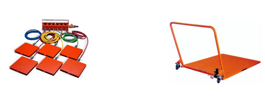 El sistema de desplazamiento de carga AeroGo está conformado por los air casters los cuales al ser alimentados con aire presurizado permiten que la carga quede suspendida del piso los milímetros suficientes para ser desplazada con facilidad.