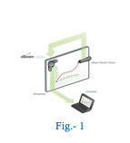 Usted puede trabajar sin proyector (Fig.-1) como una clase tradicional, anotando sobre el pizarrón las ideas, fórmulas, diagramas etc y de esta manera guardar en un archivo todas las anotaciones que realizó, en los diferentes formatos que le permite el software del dispositivo eBeam, como son: PDF, JPG, BMP, PPT, PPS. No pierda sus ideas !!!